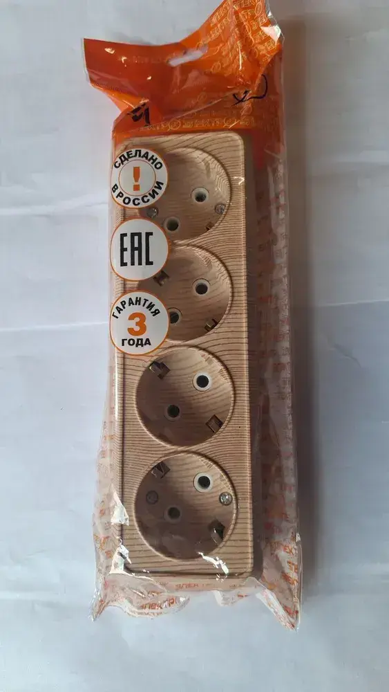 Розетка накладная четверная с заземлением Электро, розетка наружная 4 гнезда для открытой установки ,16А, 250В, сосна