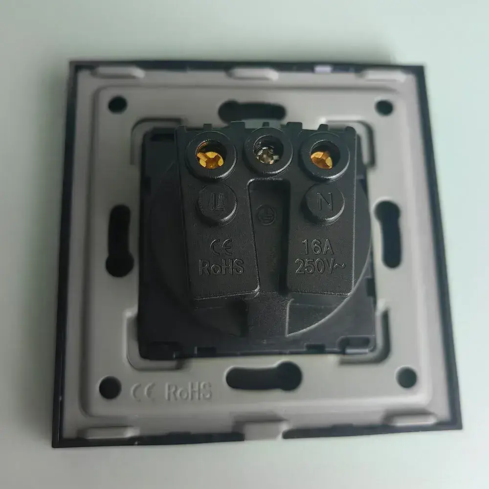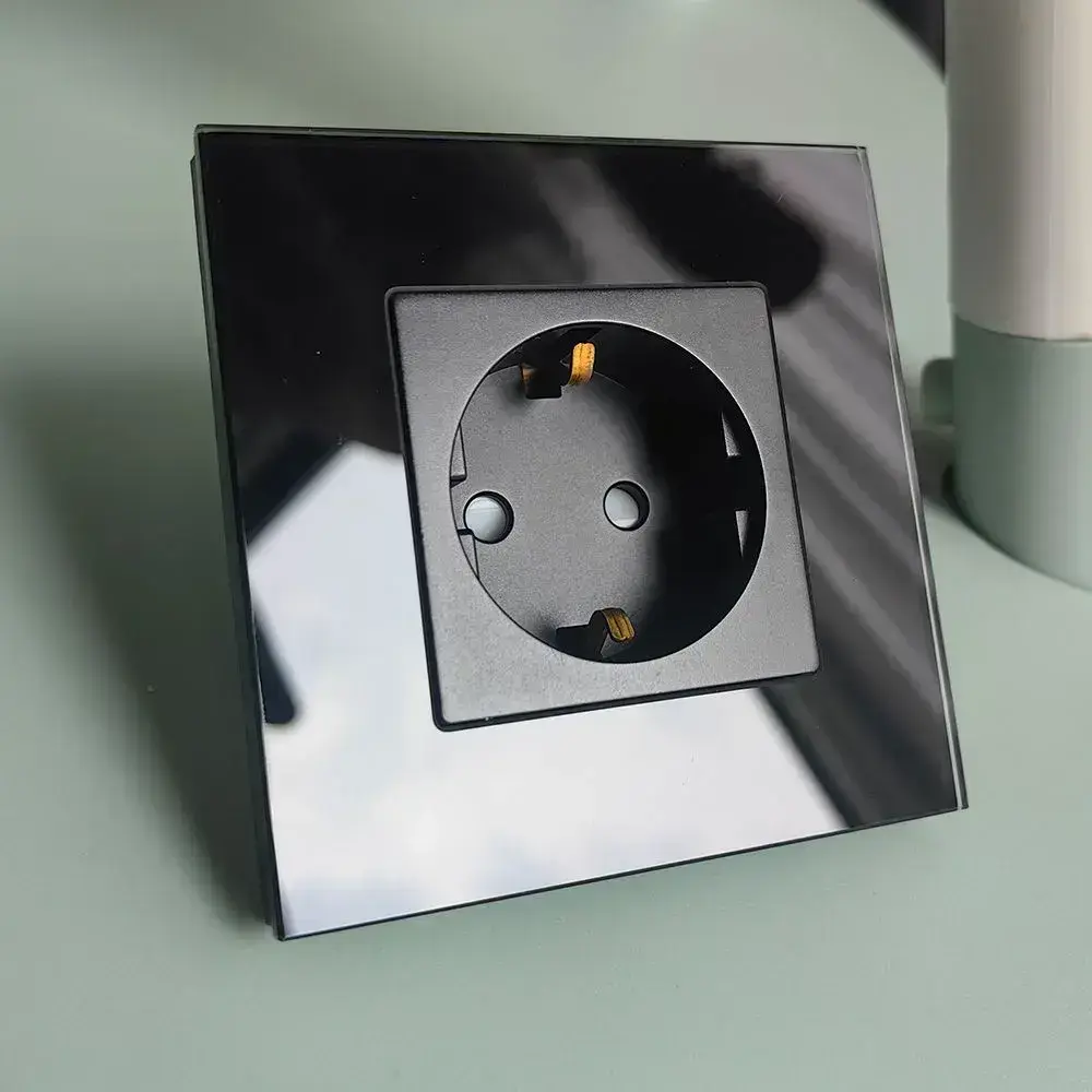 Розетка стеклянная одинарная с рамкой черная