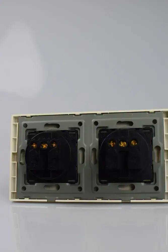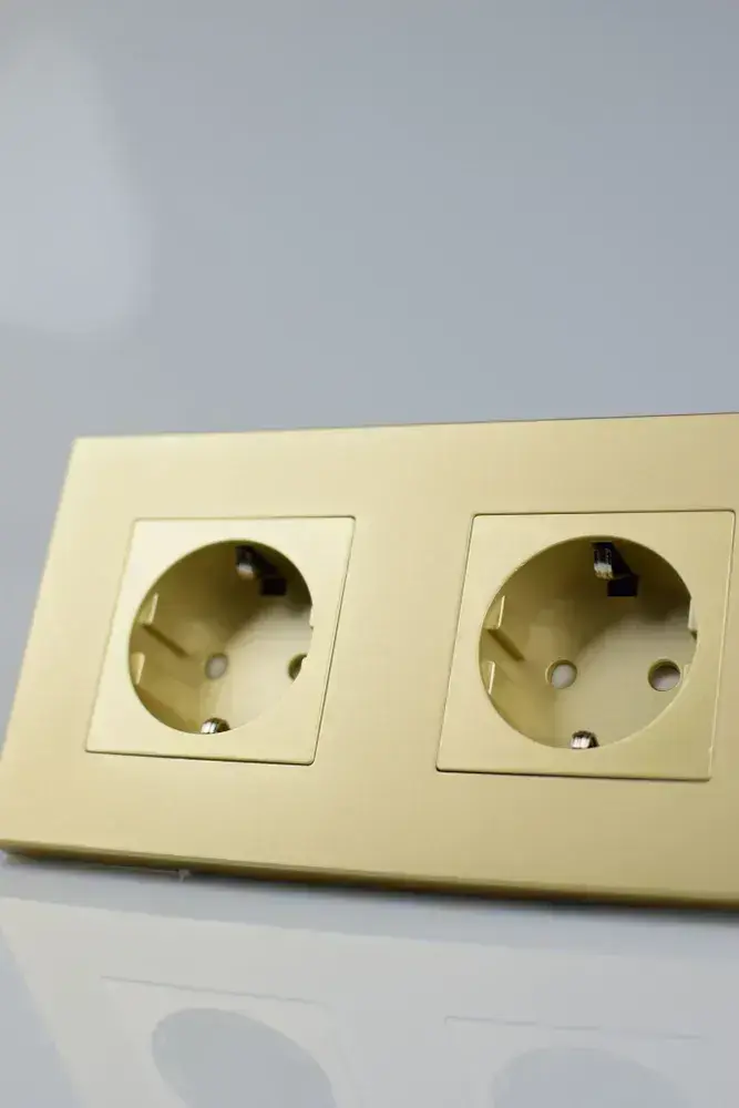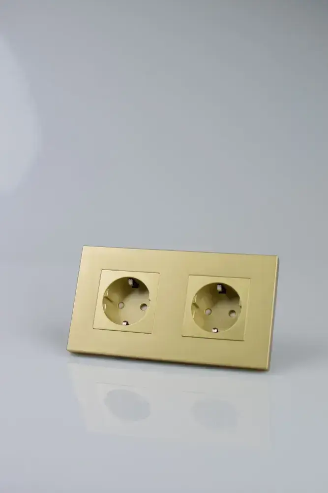 Розетка золотая с заземлением, двойная розетка с защитными шторками