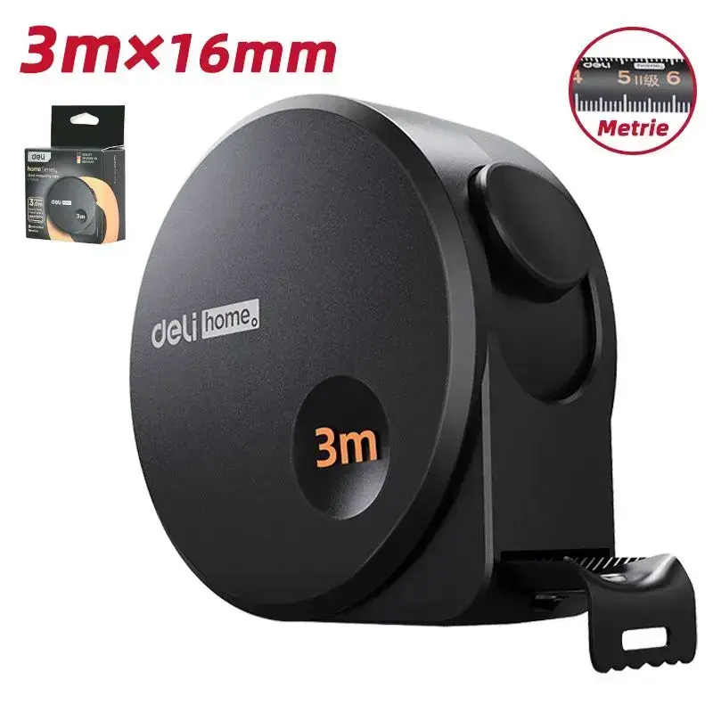Рулетка "Home Series Black" Deli HT8316 3мх16мм (Эксклюзивный дизайн, корпус из софттач пластика, противоскользящая резиновая вставка, подарочная упаковка)