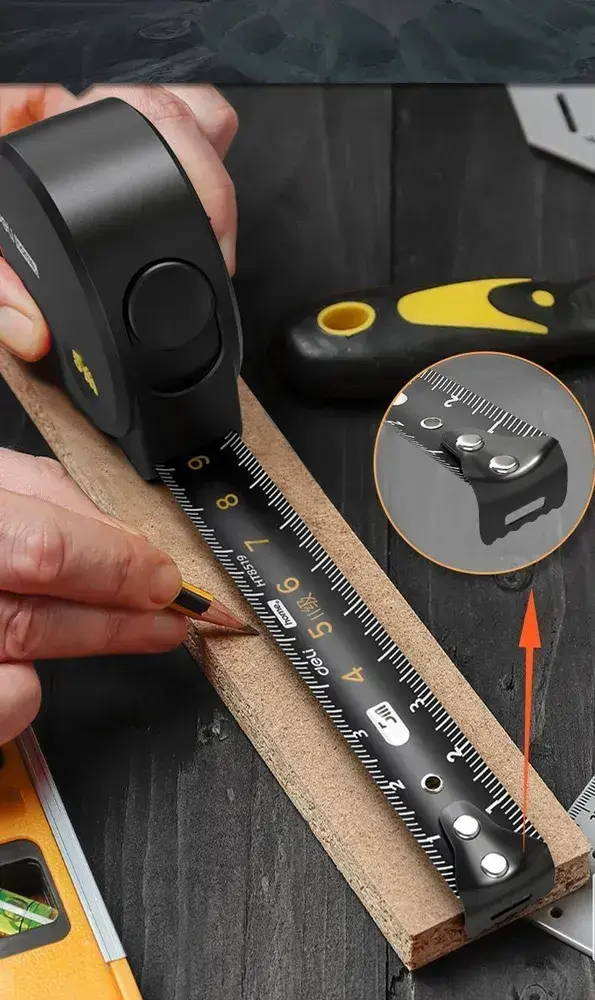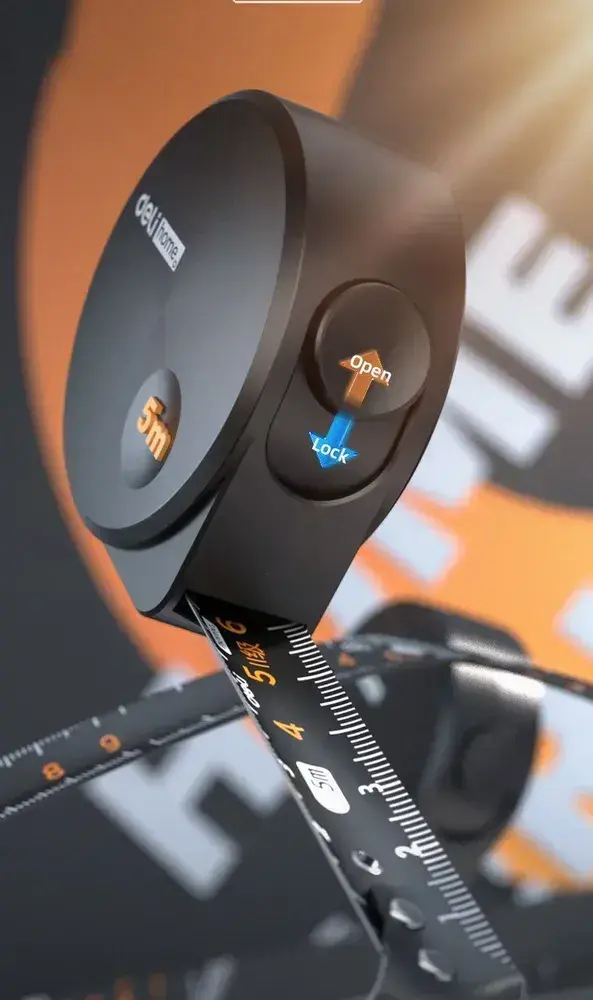 Рулетка "Home Series Black" Deli HT8519 5мх19мм (Эксклюзивный дизайн, корпус из софттач пластика, противоскользящая резиновая вставка, подарочная упаковка)