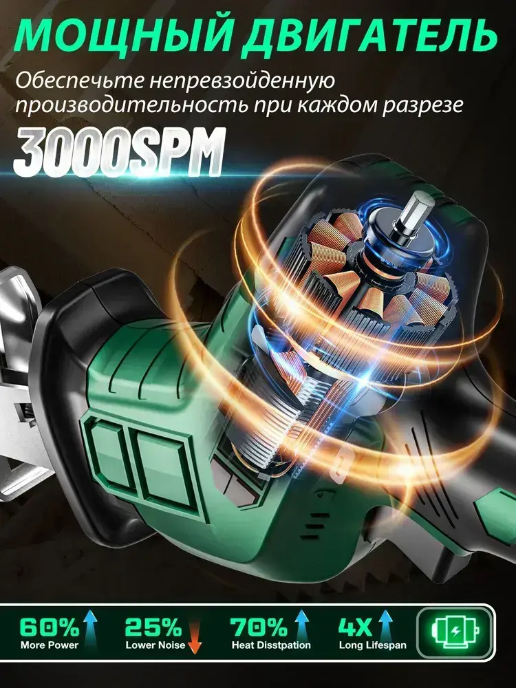 Сабельная пила аккумуляторная, 2 Батарейки 21 В , 3000 об/мин