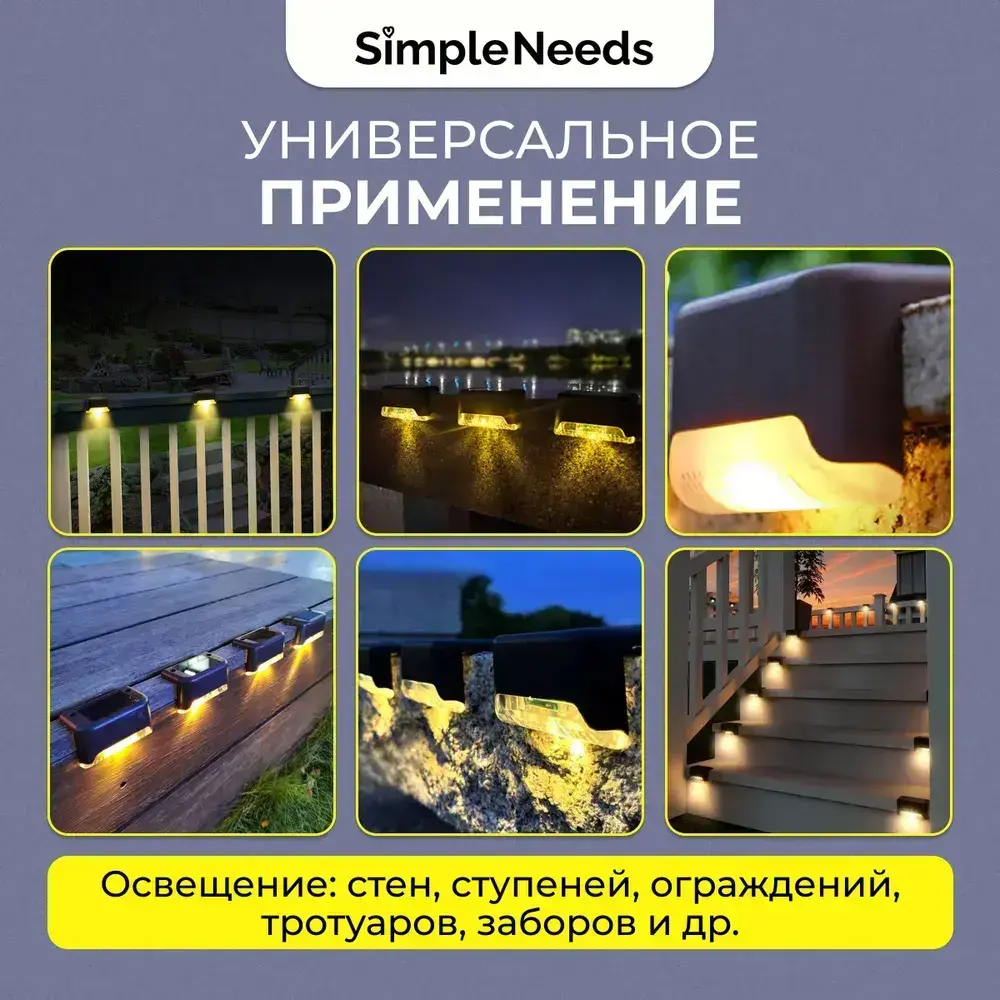 Садовые фонарики на солнечных батареях, для подсветки ступеней, заборов
