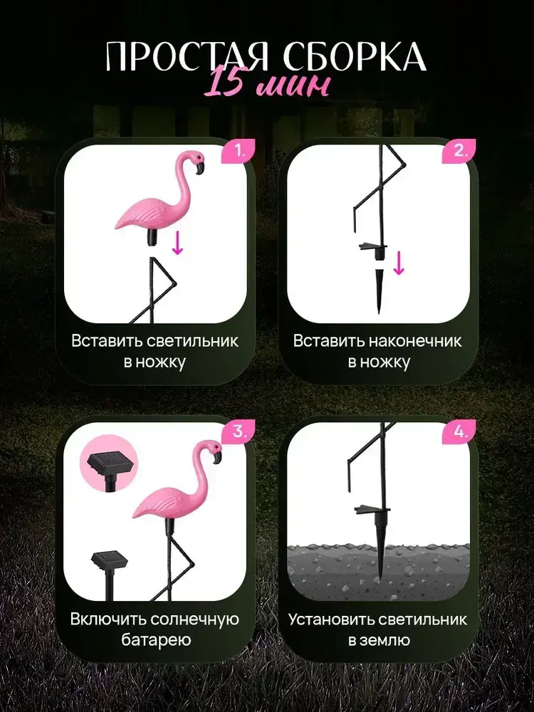 Садовый светильник фламинго 3 шт для дачи уличный светильник на солнечной батарее