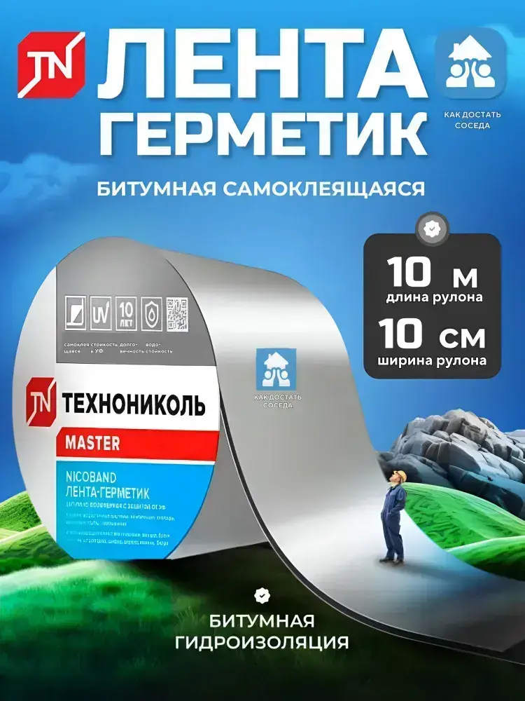 Самоклеящаяся битумная лента герметик NICOBAND - ТЕХНОНИКОЛЬ, 10 м х 10 см, серебристый