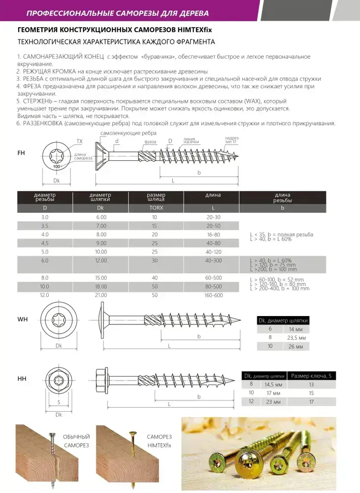 Саморез конструкционный по дереву 4,5*35 HIMTEX потайной