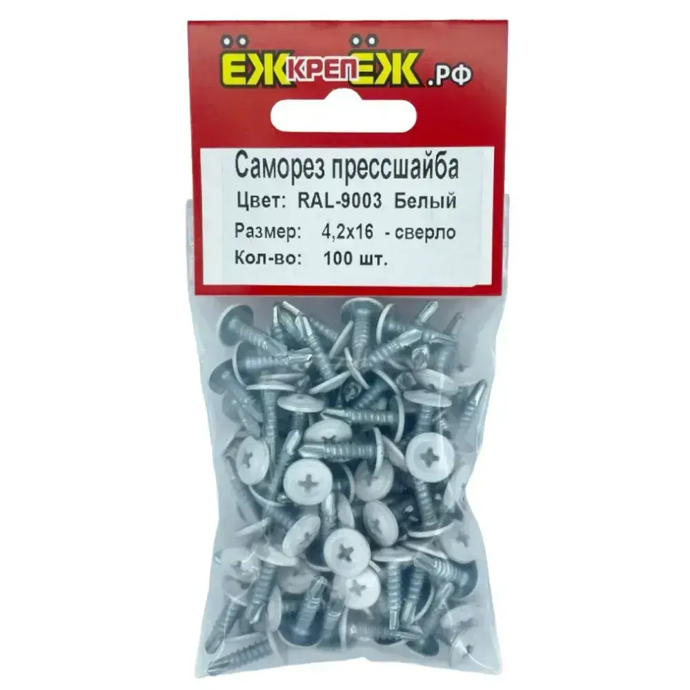 Саморез крашенный прессшайба 4,2х16 мм сверло Белый RAL-9003 (100 шт) ЁЖкрепЁЖ.