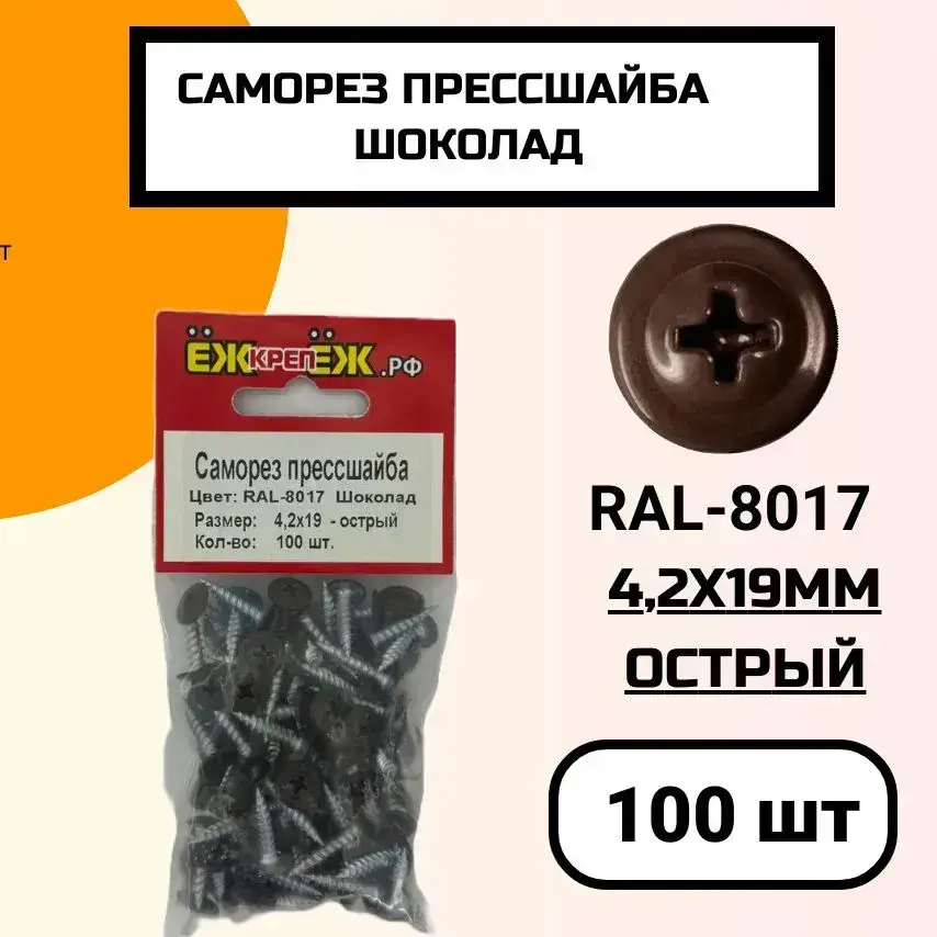 Саморез крашенный прессшайба 4,2х19 мм острый Шоколад RAL-8017 (100 шт) ЁЖкрепЁЖ.