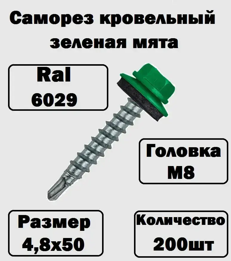 Саморез кровельный RAL6029 4,8х50 зеленая мята 200 штук