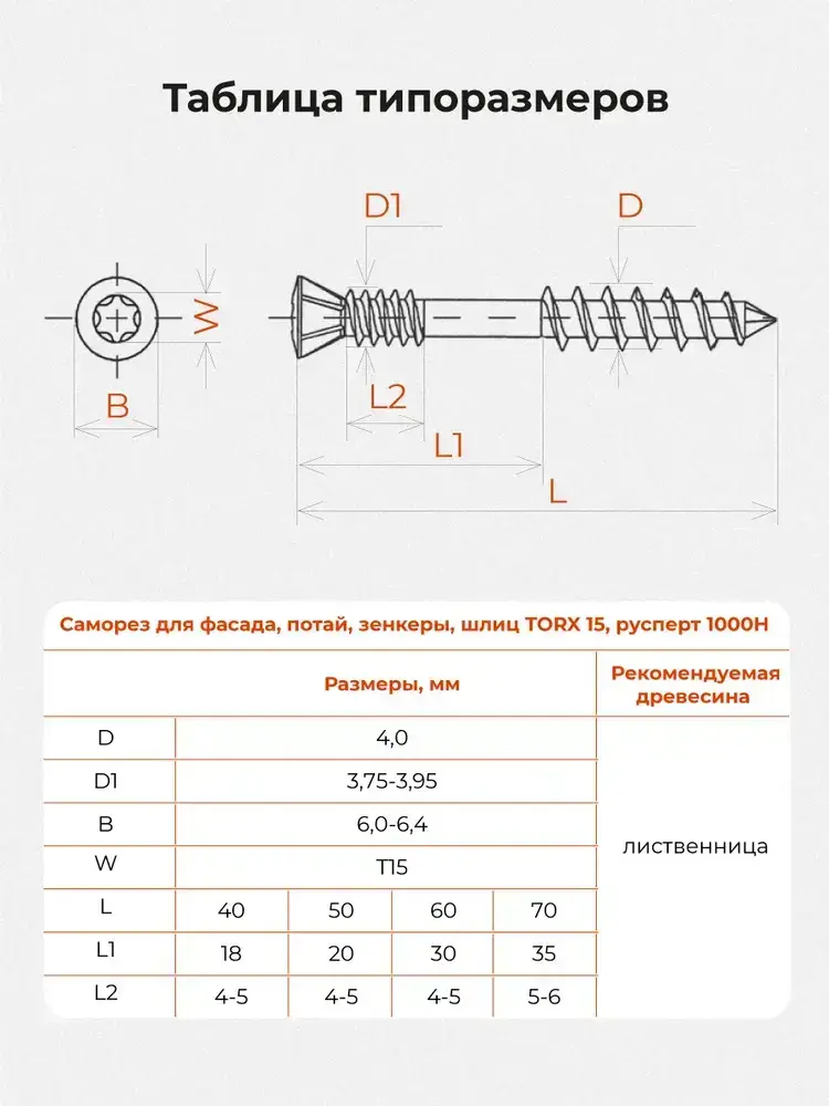 Саморез по дереву окрашенный для фасада, 4.0*70 T15, потайной, Gwozdeck, отделочный, цвет коричневый, Упаковка 200 шт