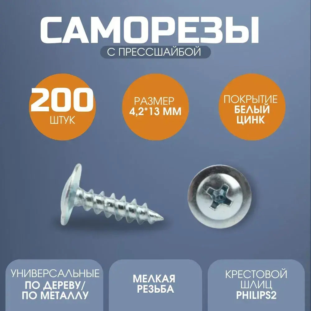 Саморез с прессшайбой острый 4.2*13 цинк 200 шт.