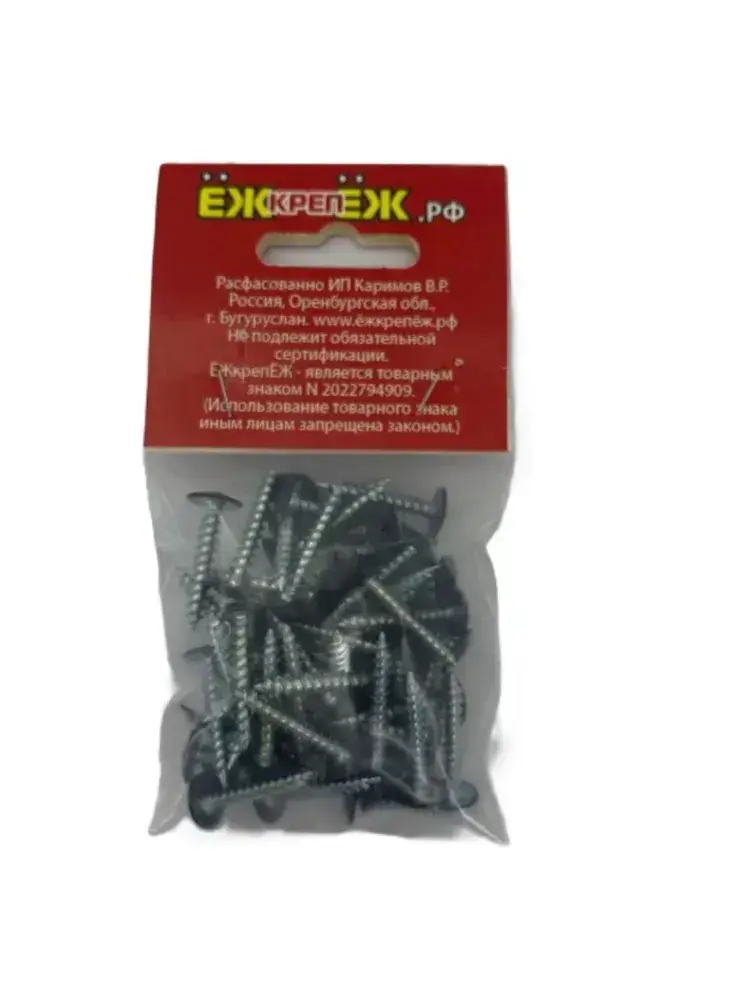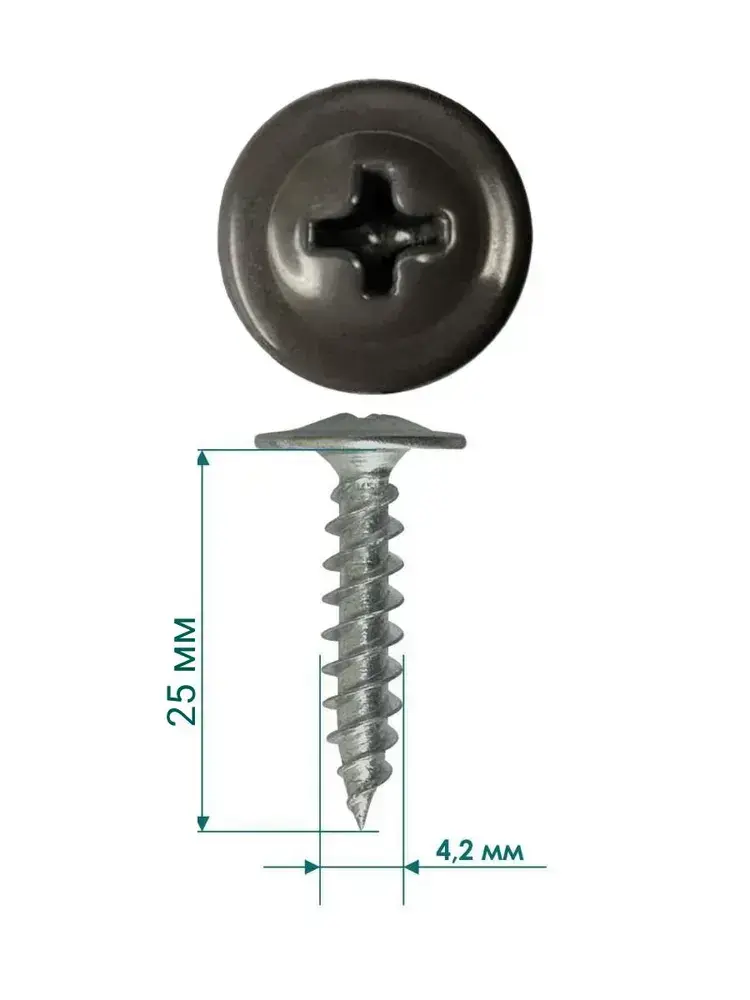 Саморезы крашенные прессшайба 4,2х25 мм острый графит RAL-7024 (50 шт) ЁЖкрепЁЖ.