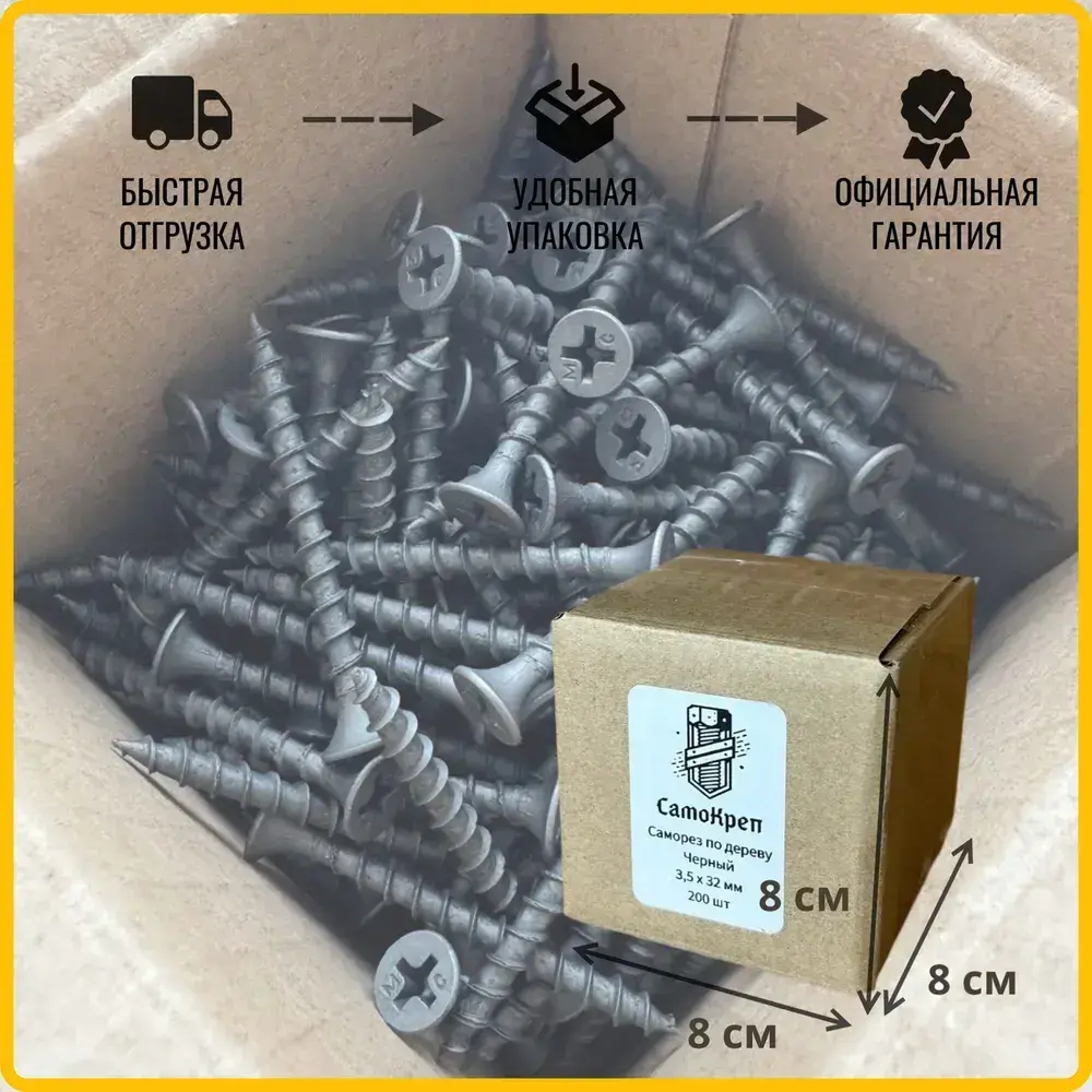 Саморезы по дереву, 3,5 x 45 мм черные 200 шт, крепеж - СамоКреп