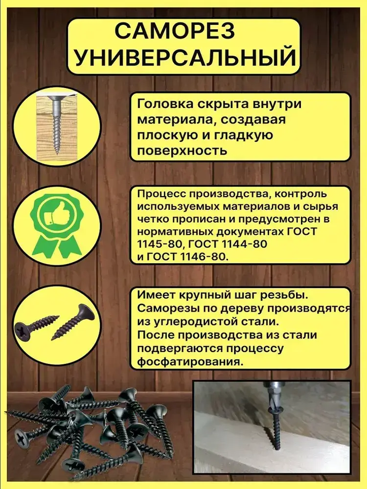 Саморезы по дереву, 3,5мм*41мм, черный, 0,5кг, 204 штуки