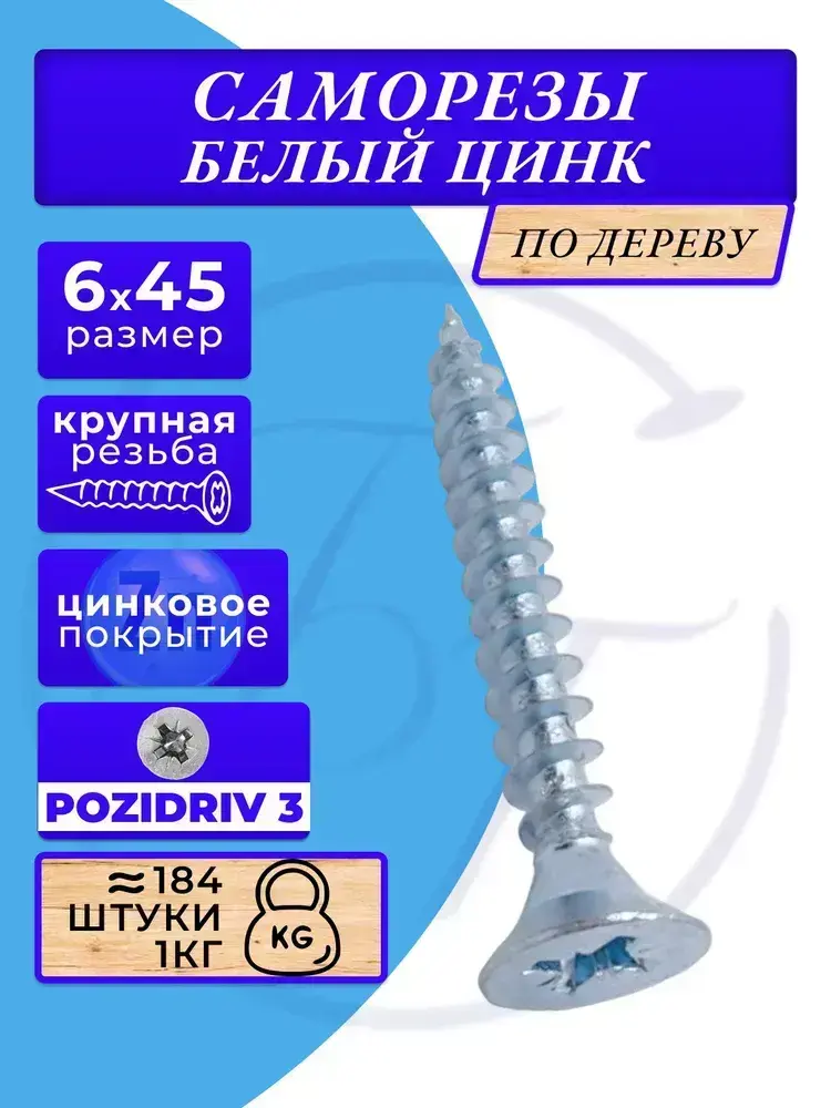 Саморезы по дереву 6х45 белый цинк. 1кг