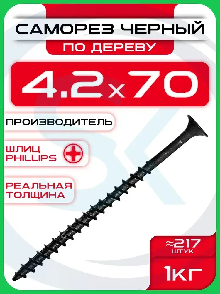 Саморезы по дереву, черные 4,2 х 70 мм (217 шт/1 кг)