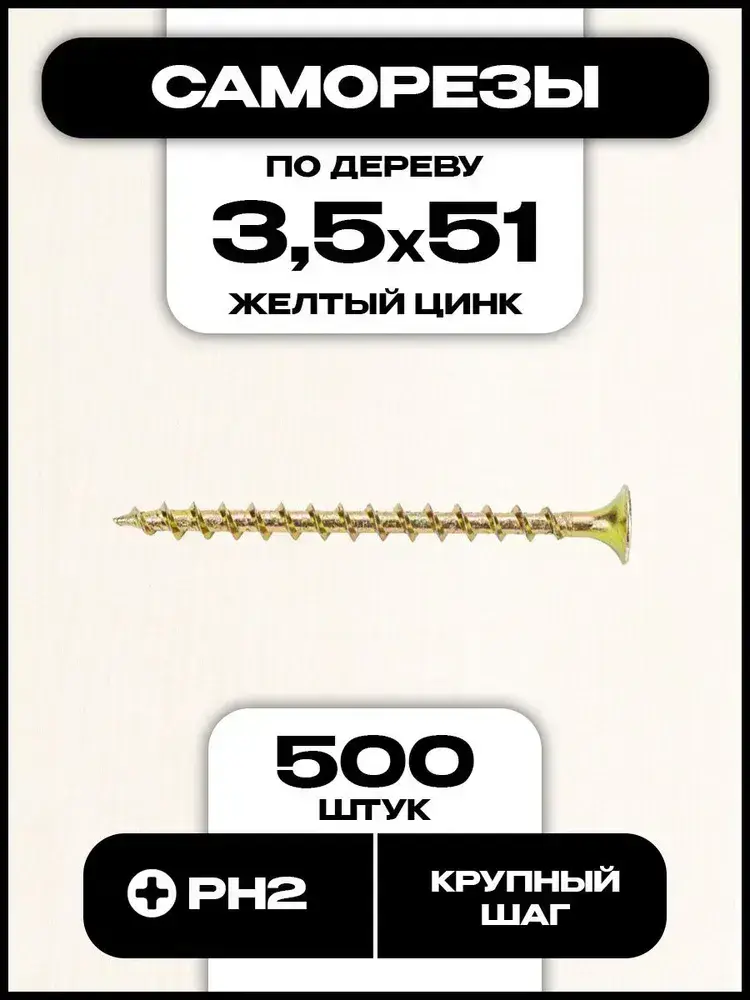Саморезы по дереву, желтые, 3,5х51 мм, 500 шт.