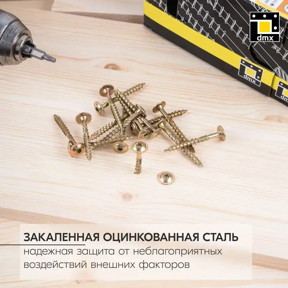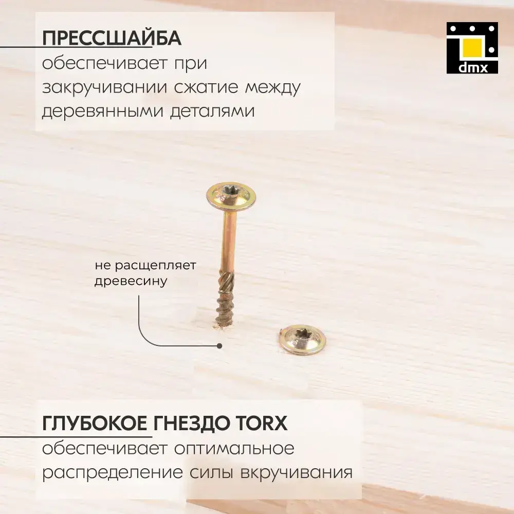 Саморезы по дереву желтые конструкционные с прессшайбой 5x45 мм (200шт)