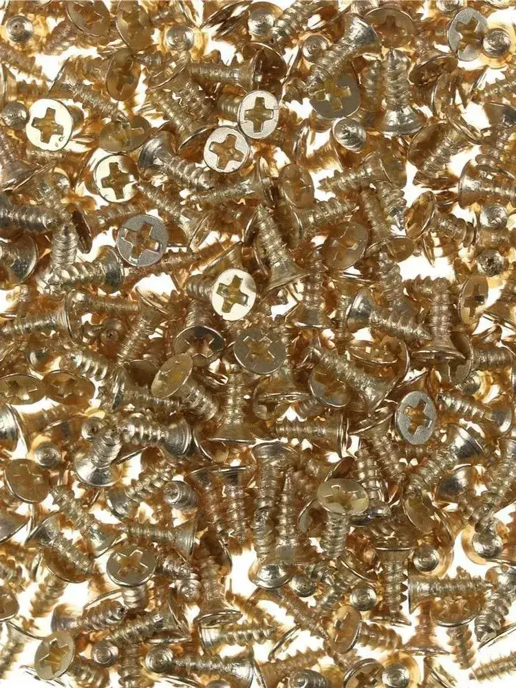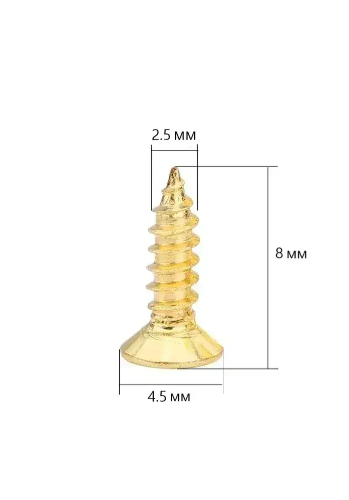 Саморезы по дереву золотые 2.5х8 мм декоративные с потайной головкой 100 шт, шурупы для шкатулки