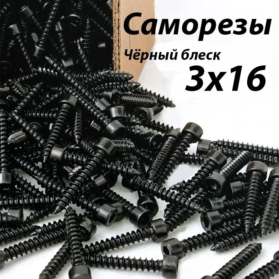 Саморезы под шестигранник 3 х 16 мм черные 32шт для динамиков акустики автомобильные набор м3х16 (размер шестигранника 2.5 мм.) (HEX 2.5) для колонок твитеров и сабвуфер. Саморез для динамиков