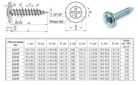 Саморезы с прессшайбой острые оцинкованные 4,2х19 100шт