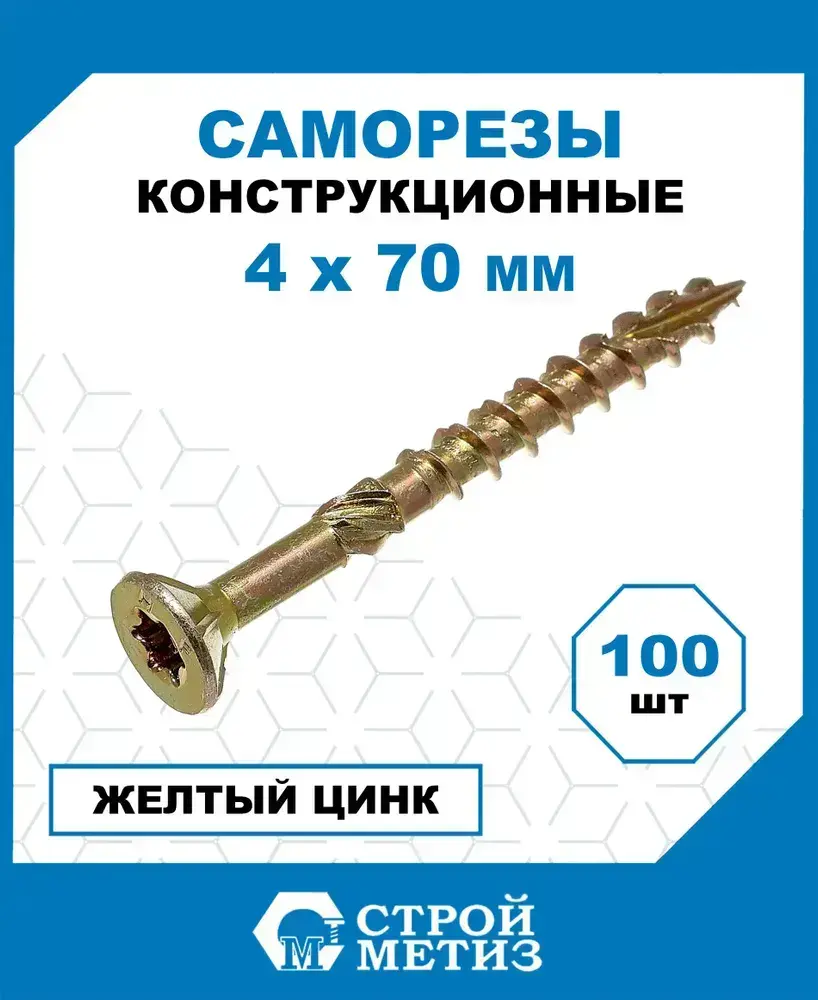 Саморезы Стройметиз конструкционные 4х70, сталь, покрытие - желтый цинк, 100 шт.