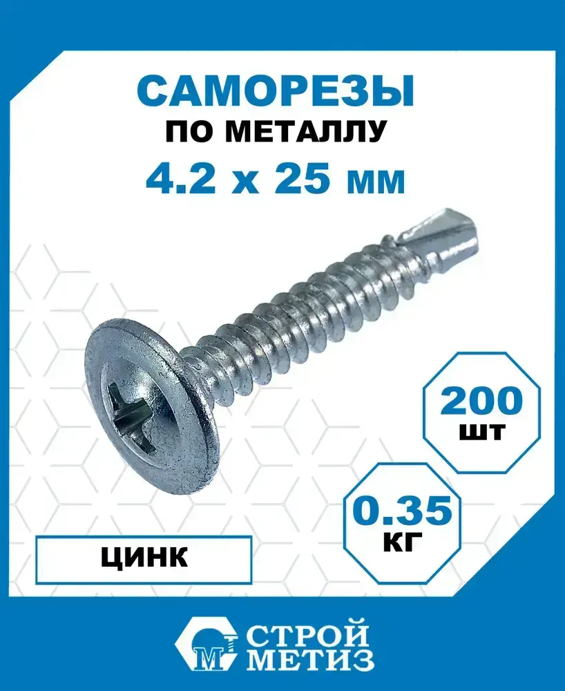 Саморезы Стройметиз металл-металл со сверлом 4.2х25, сталь, покрытие - цинк, 200 шт.
