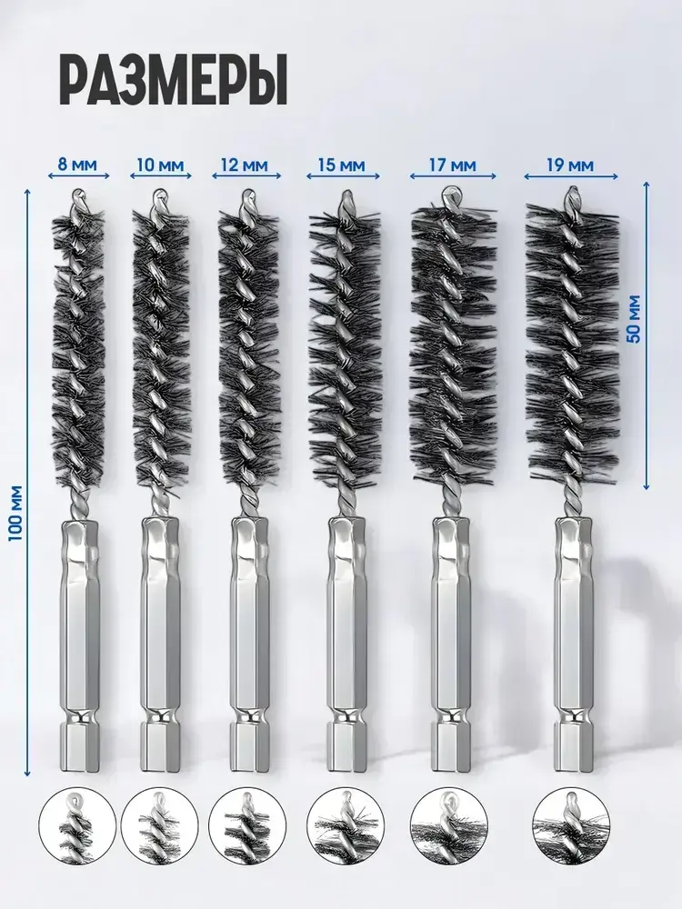 Щетка для скважины из нержавеющей стали. Металлические щетки для щеточной ушм. 6 шт.
