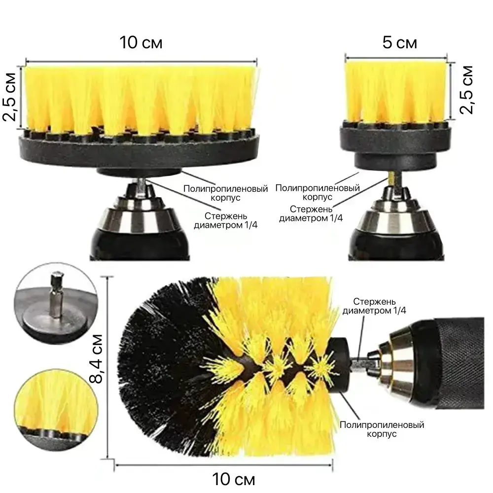 Щетки для уборки на дрель набор насадок , набор щеток насадок на шуруповерт для химчистки, полировки, клининга