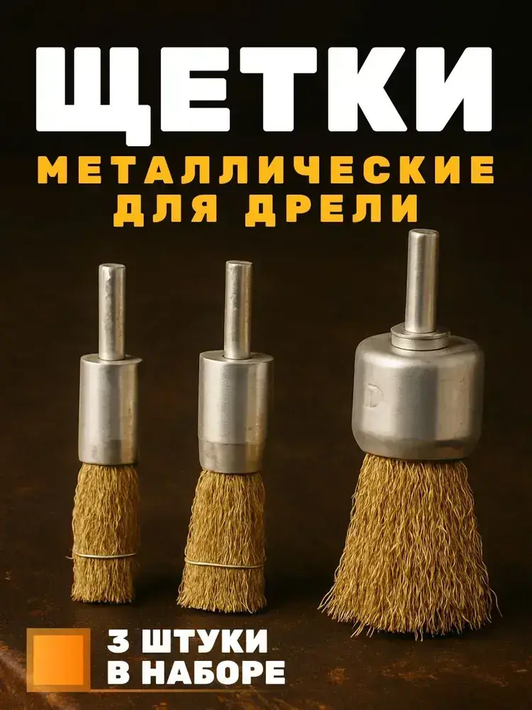 Щетки металлические для дрели 3шт, Набор щеток-крацовок Кистевых насадок для дрели, Корщетка