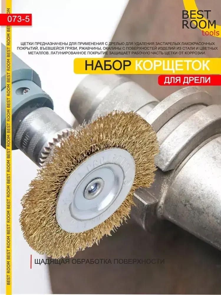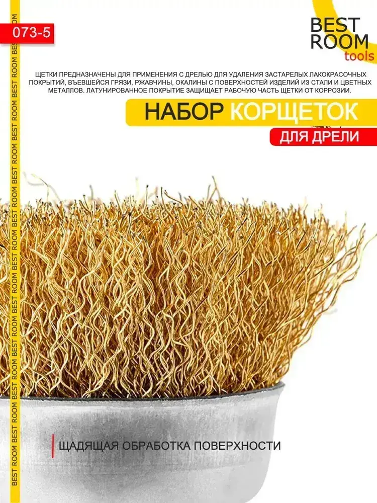Щетки металлические для дрели, Набор щеток для зачистки от краски и ржавчины, шлифования, витая стальная латунированная проволока