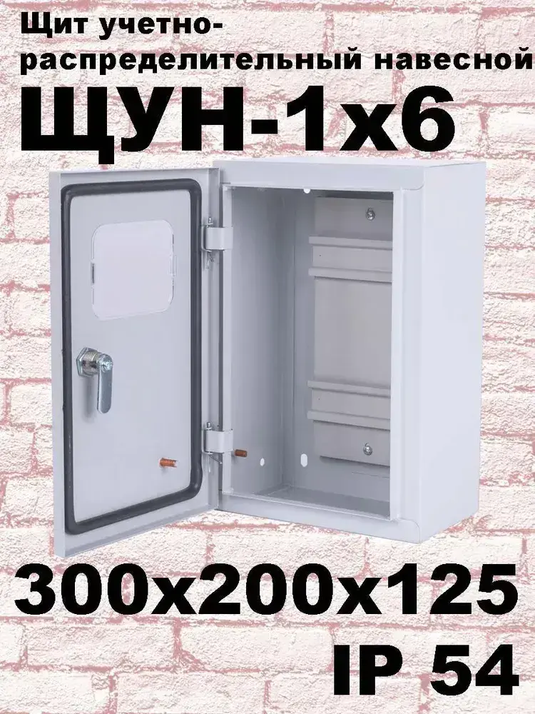 ЩУН-1х6 (300х200х125) IP54. Увеличенный под электрический счетчик и автоматические выключатели до 6 модулей Щит учетно-распределительный навесной ЩРУ 1Н6 IP54