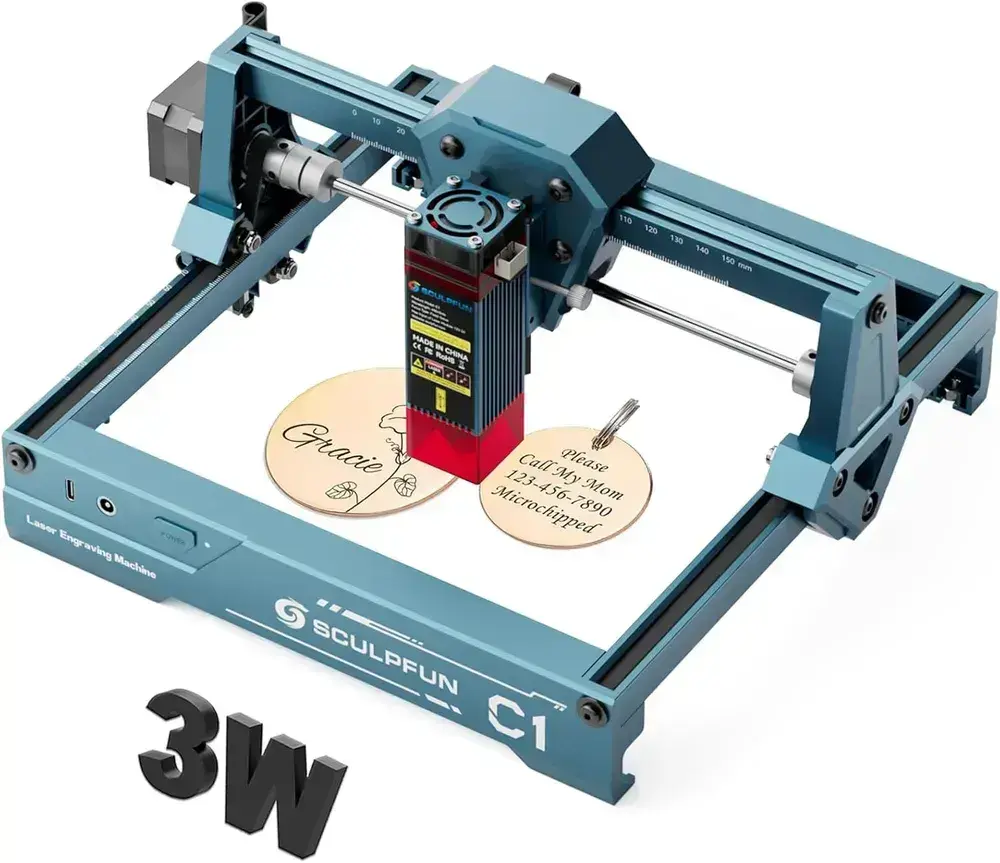 SCULPFUN C1 3 Вт Мини-лазерный гравировальный станок, высокая точность 0,04 мм, скорость до 10 000 мм/мин, подключаемый и работающий многофункциональный станок
