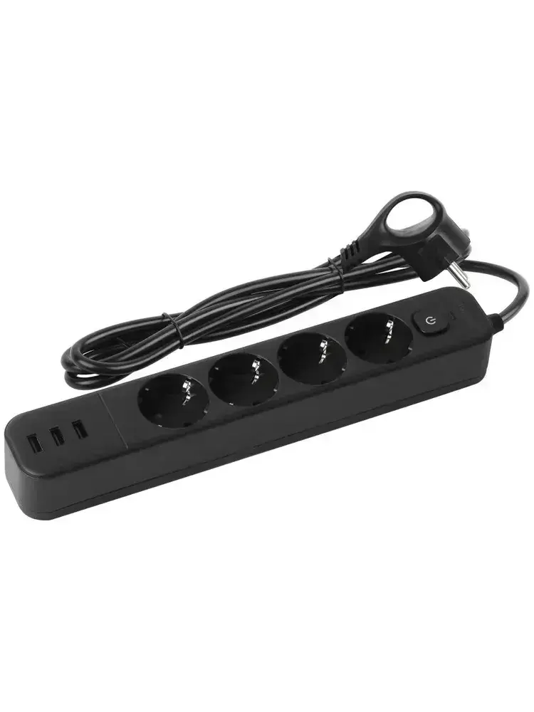 Сетевой фильтр Intro SFE415-3xUSBA-B с базовой защитой с заземлением с выключателем 4 розетки+3xUSBA 3,3A 1,5м 10А / удлинитель сетевой 1,5м