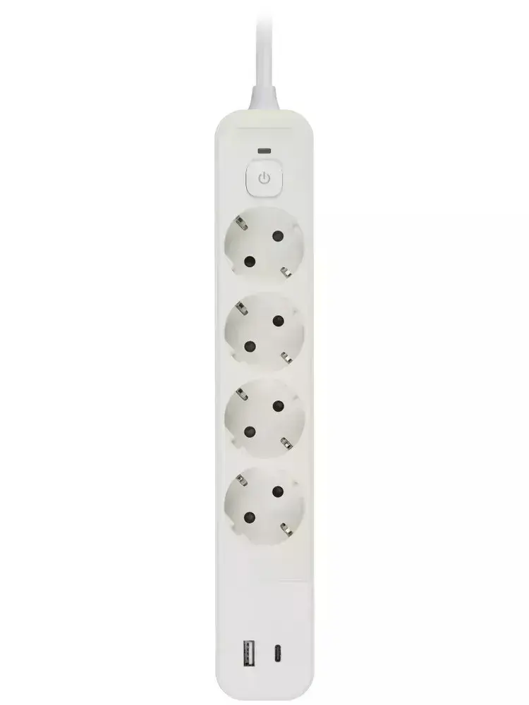 Сетевой фильтр Intro SFE430-2xUSBAC-W с базовой защитой с заземлением с выключателем 4 розетки+2xUSBA+C 3,1A 3м 10А / удлинитель сетевой 3м