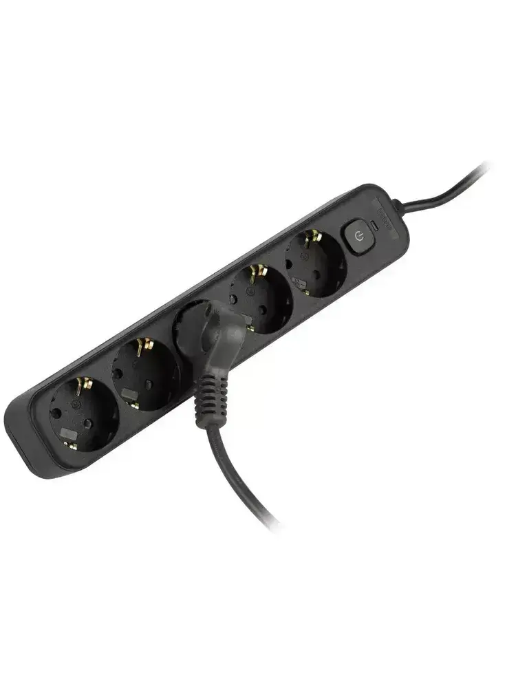 Сетевой фильтр Intro SFE530-B с базовой защитой с заземлением с выключателем 5 розеток 3м 10А черный / удлинитель сетевой 3м