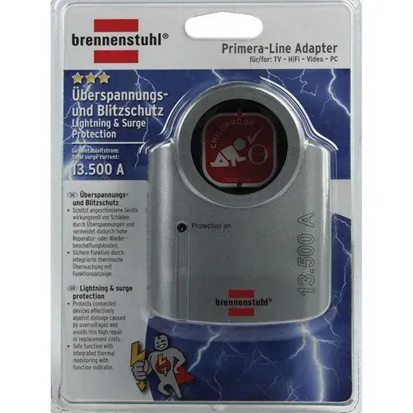 Сетевой фильтр розетка адаптер Brennenstuhl (1 розетка, серый), 1506950 с защитой, для компьютера, телевизора, бытовой техники