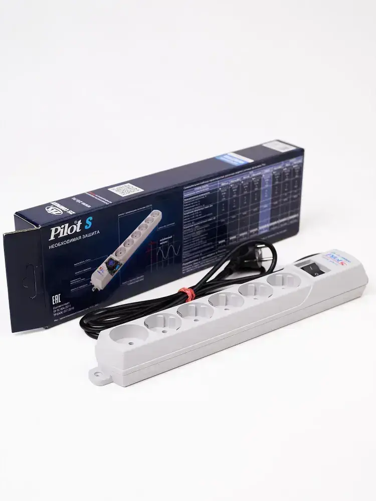Сетевой фильтр с предохранителем 1.8м (6 розеток) белый Pilot S