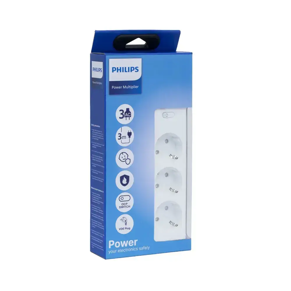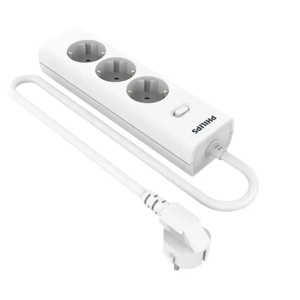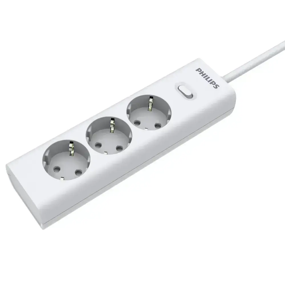 Сетевой фильтр удлинитель Philips CHP2135WB/51 с тремя стандартными розетками EU, с заземлением и защитой от перегрузок, 3 м, белый