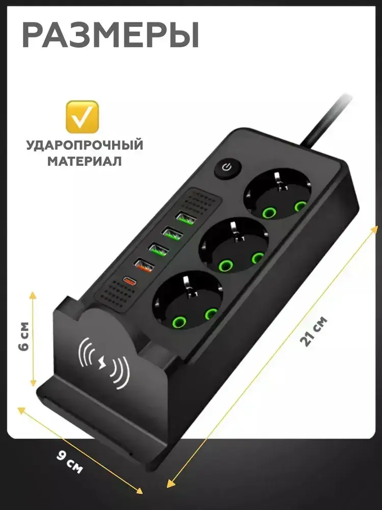 Сетевой фильтр удлинитель usb беспроводная зарядка 9в1 5 метров