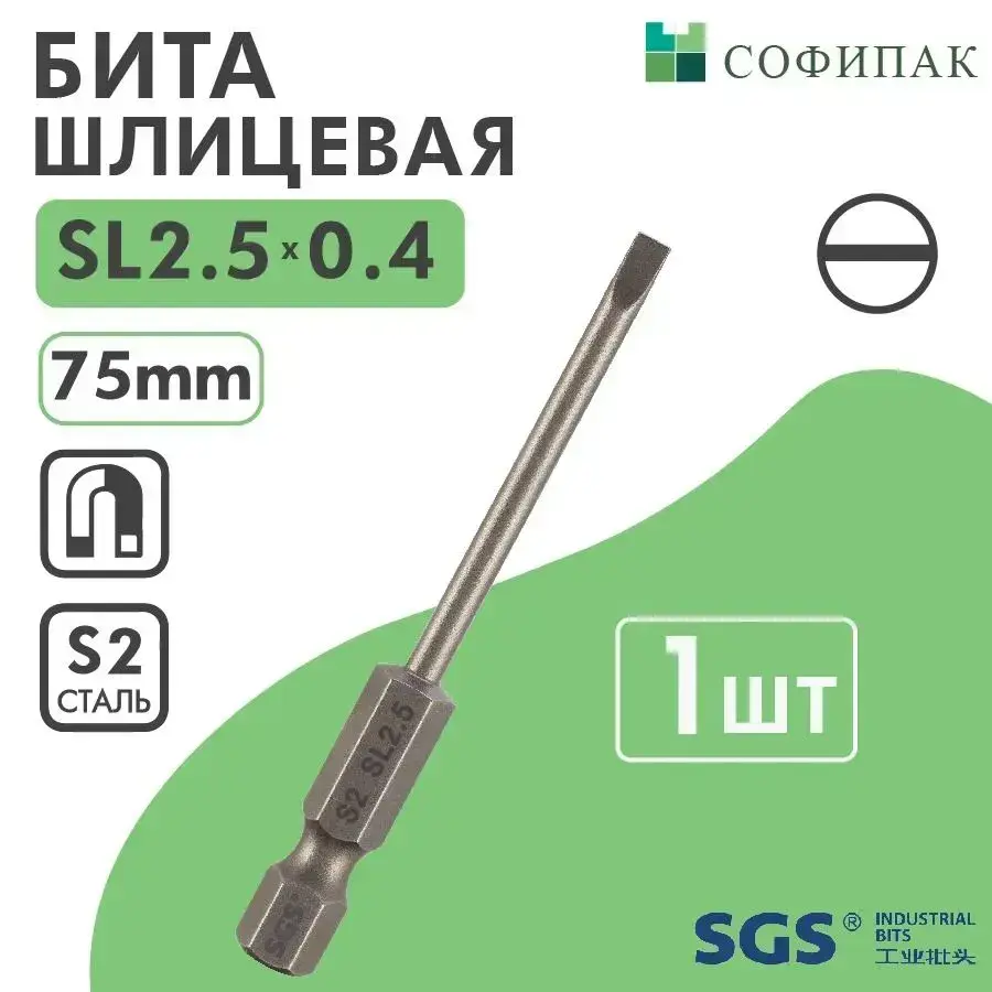 SGS Бита шлицевая SL2.5x0.4х75мм S2 1шт