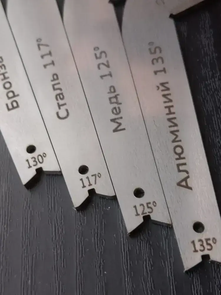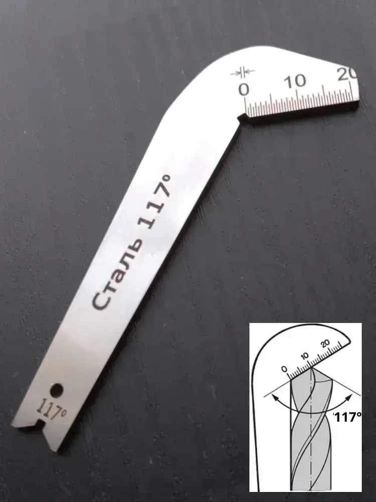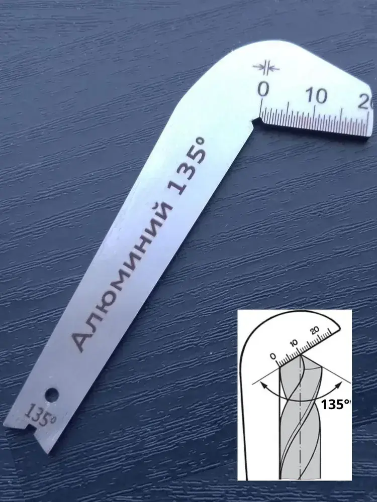 Шаблон заточки сверл 117-125-130-135 градусов набор из 4 штук.