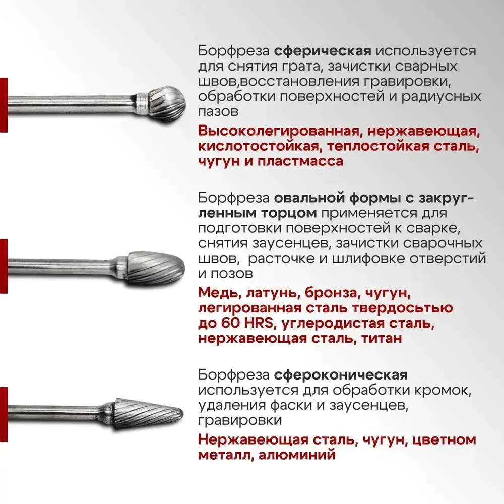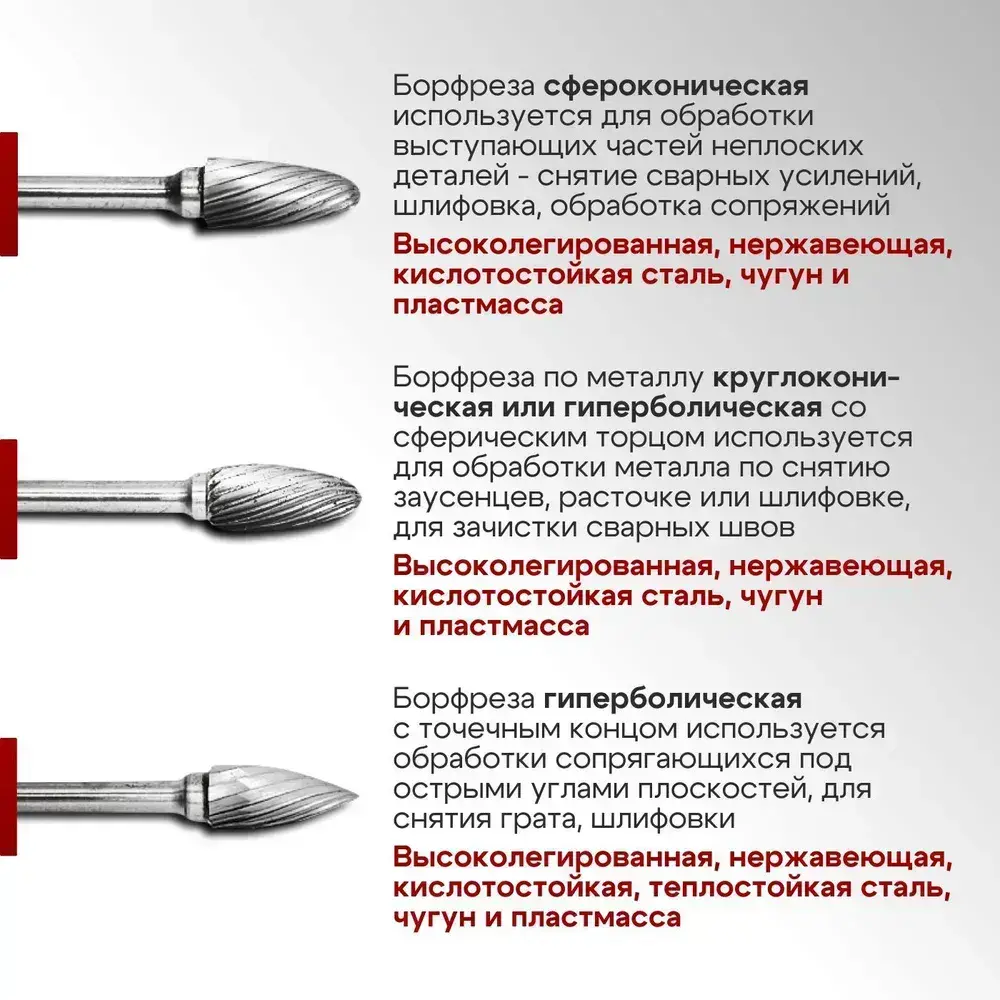 Шарошки по металлу и дереву твердосплавные борфрезы 10 шт из карбида вольфрама хвостовик 3мм.