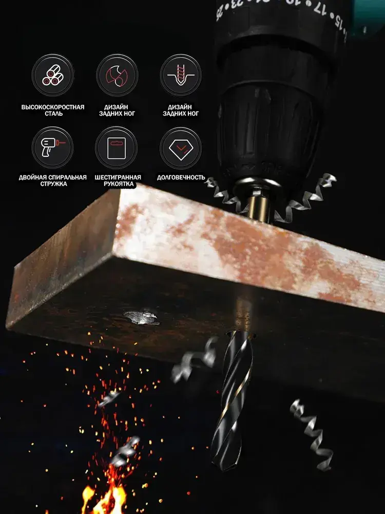 шестигранный хвостовик/Набор сверл по металлу HSS 15 шт (1.5-6.5 мм)