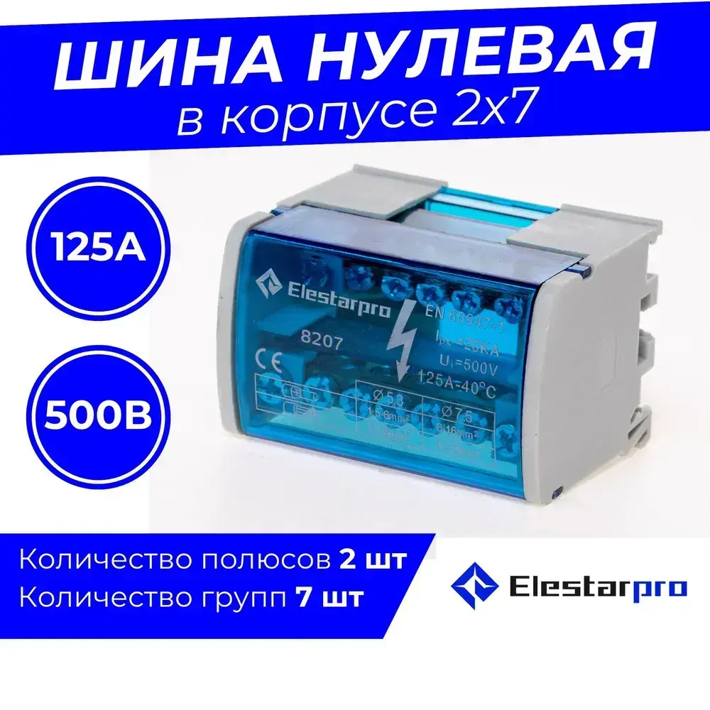 Шина нулевая, кросс-модуль 2x7, для DIN-рейки