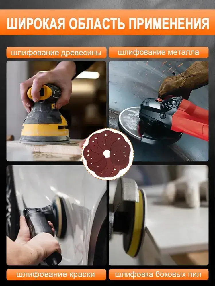 Шлифовальные круги 125мм , на липучке Р40 - Р1500 , 100 штук инструменты , для угловых шлифмашин