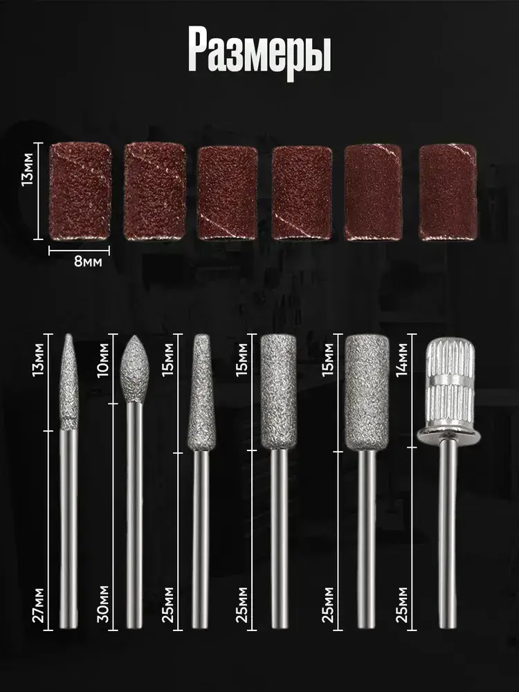 Шлифовальные насадки на гравер 12 шт. алмазные / Шлифовальные насадки для гравера