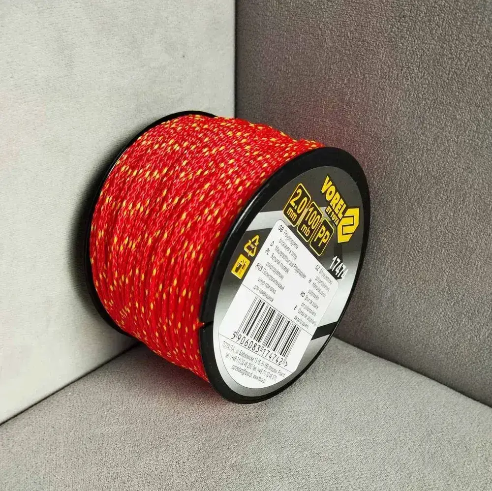 Шнур разметочный каменщика красный 2,0 мм х 100 м, VOREL