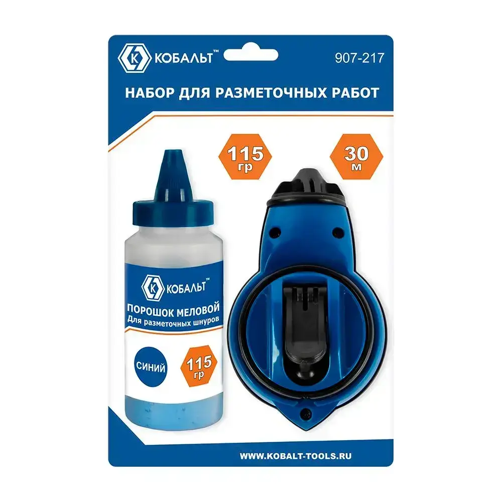Шнур разметочный КОБАЛЬТ 30 метров + меловой порошок.