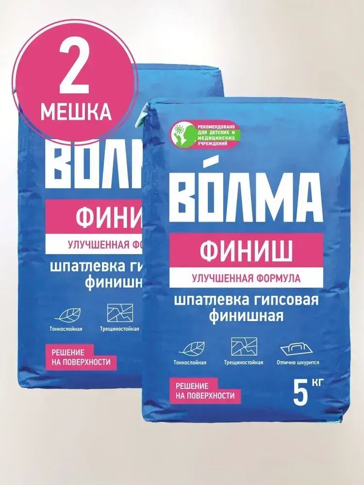 Шпаклевка для стен финишная гипсовая ВОЛМА Финиш, 2 шт по 5кг